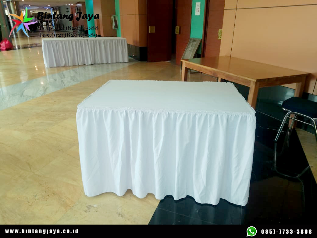 Layanan sewa meja kotak skirting putih Jakarta kami siap melayani berbagai kebutuhan event di berbagai wilayah seperti: